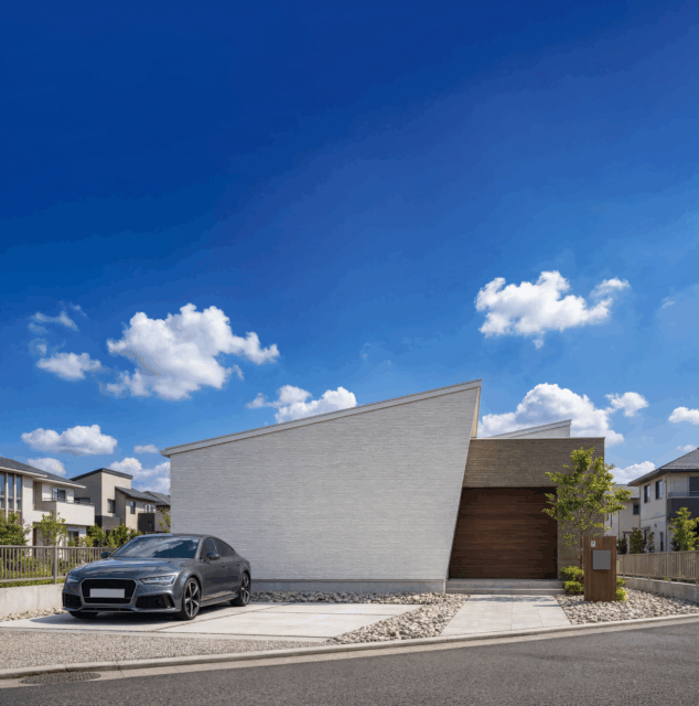 白い壁にスッと伸びる屋根ラインが爽やか✨