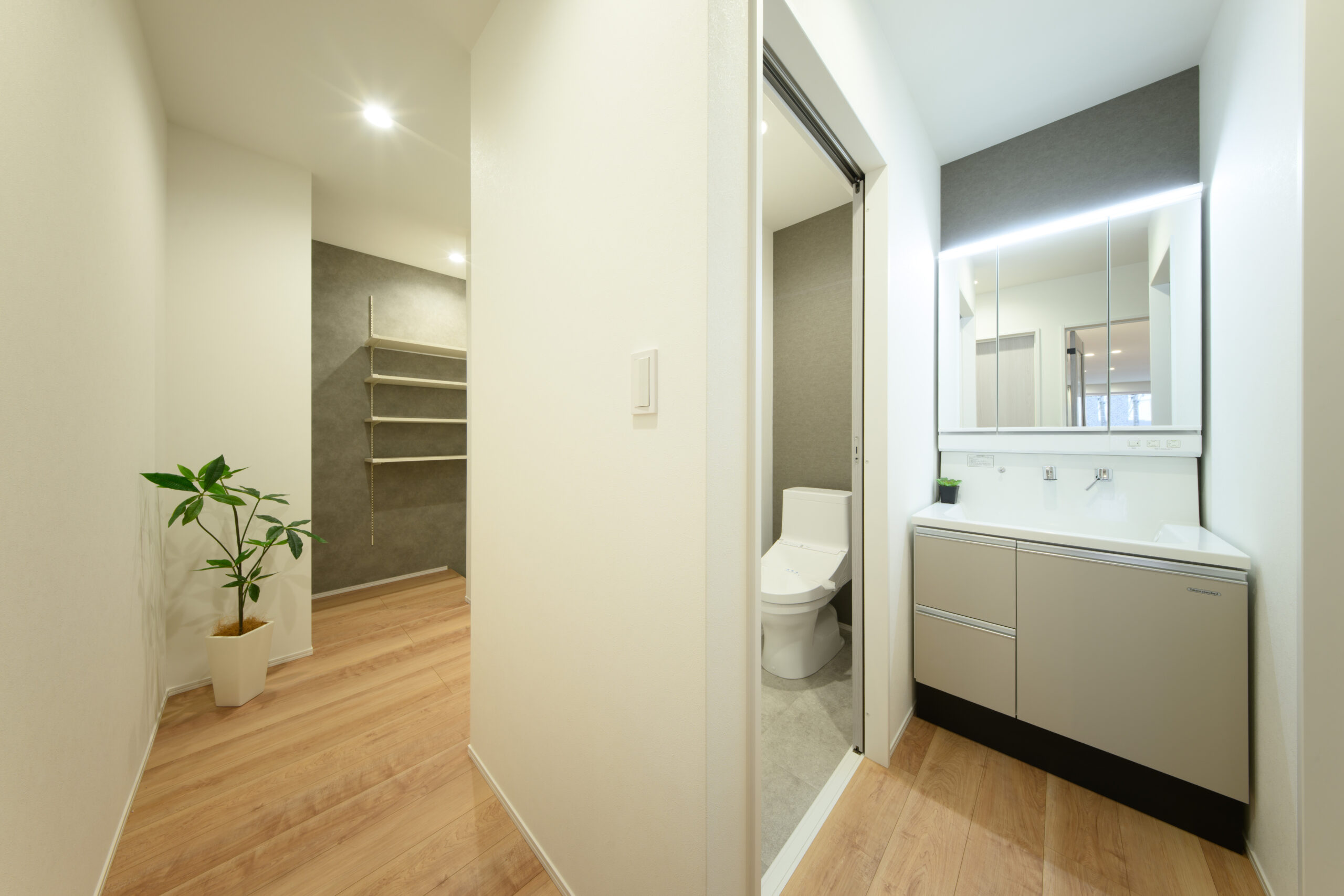玄関からは無駄のない動線でLDKへとつながり、帰宅後の流れも快適。