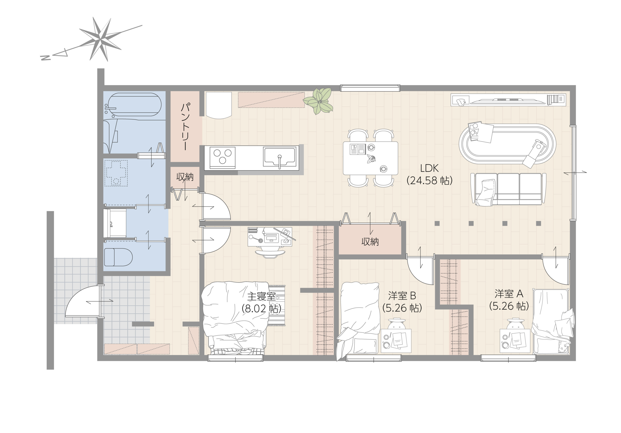 各洋室は開放感のある広さに加え収納も完備し、自分の時間も大切にできる住まいです。