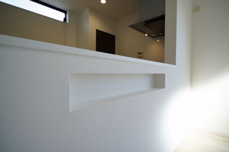 奥様:玄関とダイニング部分にニッチを作ったことです。玄関であれば鍵とか、ダイニングであればティッシュとかリモコンを置く場所を作りたかったんです。テーブルの上に必ず置くものとかで散らかってしまうのを防ぎたくて。